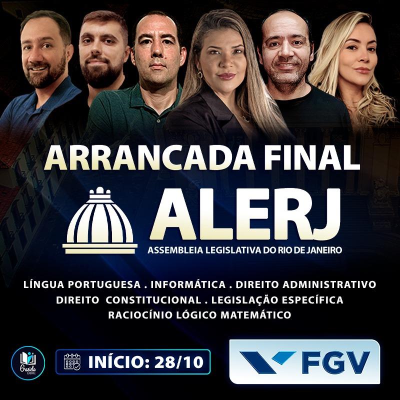 19 AULÕES AO VIVO para você fazer aquela revisão para o concurso da Assembleia Legislativa do Estado do Rio de Janeiro (ALERJ), para o cargo de Especialista Legislativo Nível IV.